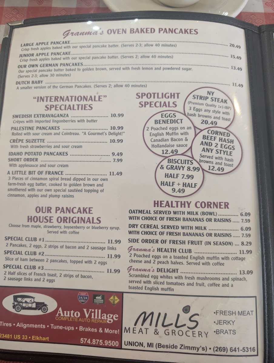 Swiss cheese and tender asparagus. Choice of buttermilk pancakes or toast.